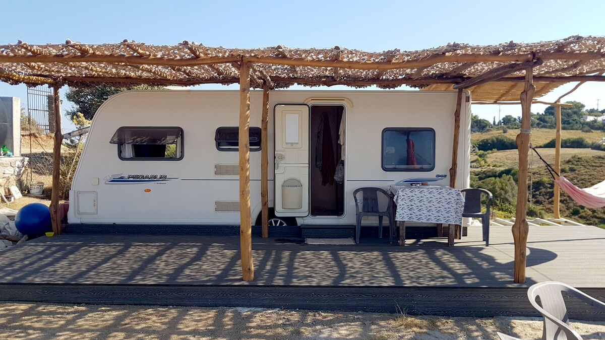 The ideal choice for travelers who appreciate the austerity and the contact with nature! Here you can relax and enjoy the calmness and tranquility. The cozy caravan is placed in a private garden with fantastic mountain and sea view. There are some chickens in the garden and you are free to consume their eggs in your breakfast.