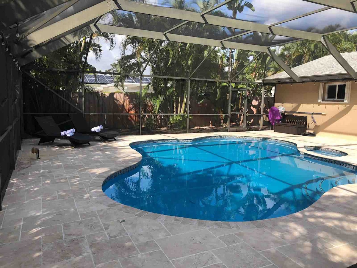 Wamkelekile kwiholide yakho enelanga eWest Palm Beach. Le ndawo intle inepuli enamanzi ashushu, elungele ukuphumla emva kosuku ubuka idolophu okanye ulwandle olukufutshane. Ifumaneka lula, yimizuzu nje ukusuka kwisikhululo seenqwelo-moya i-PBI kunye nedolophu eseWest Palm kunye neenyawo ezimfutshane ukuya kwi-zoo okwenza kube lusuku oluhle lokuphumla kwiintsapho. Le ndlu inamagumbi okulala avulekileyo ayi-3, amagumbi okuhlambela ayi-2 anamhlanje nekhitshi elinento yonke, nto leyo eyenza ikhaya lakho libe tofotofo kwindawo eshushu. Yonwabela ukukhanya kwelanga eFlorida!