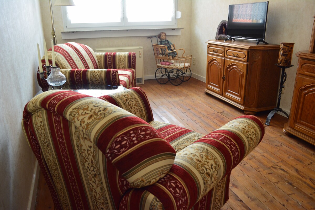 Zipholele uze wonwabele ukuhlala kwakho kwiflethi yethu entle eyi-51 m², ekumgangatho osezantsi wendawo yokuhlala yentsapho. Inendawo yokungena yabucala, iveranda encinci, isauna yabucala (€15 / iiyure eziyi-2), nendawo yokupaka yasimahla ngaphandle. Ikhitshi elincinci elinento yonke, ifriji encinci, umatshini wekofu, iketile, netowusta nazo ziyafumaneka. Ilungele izibini, abahambi bezoshishino, nabo bafuna ukuphumla kwingingqi yewayini yaseRheinhessen.