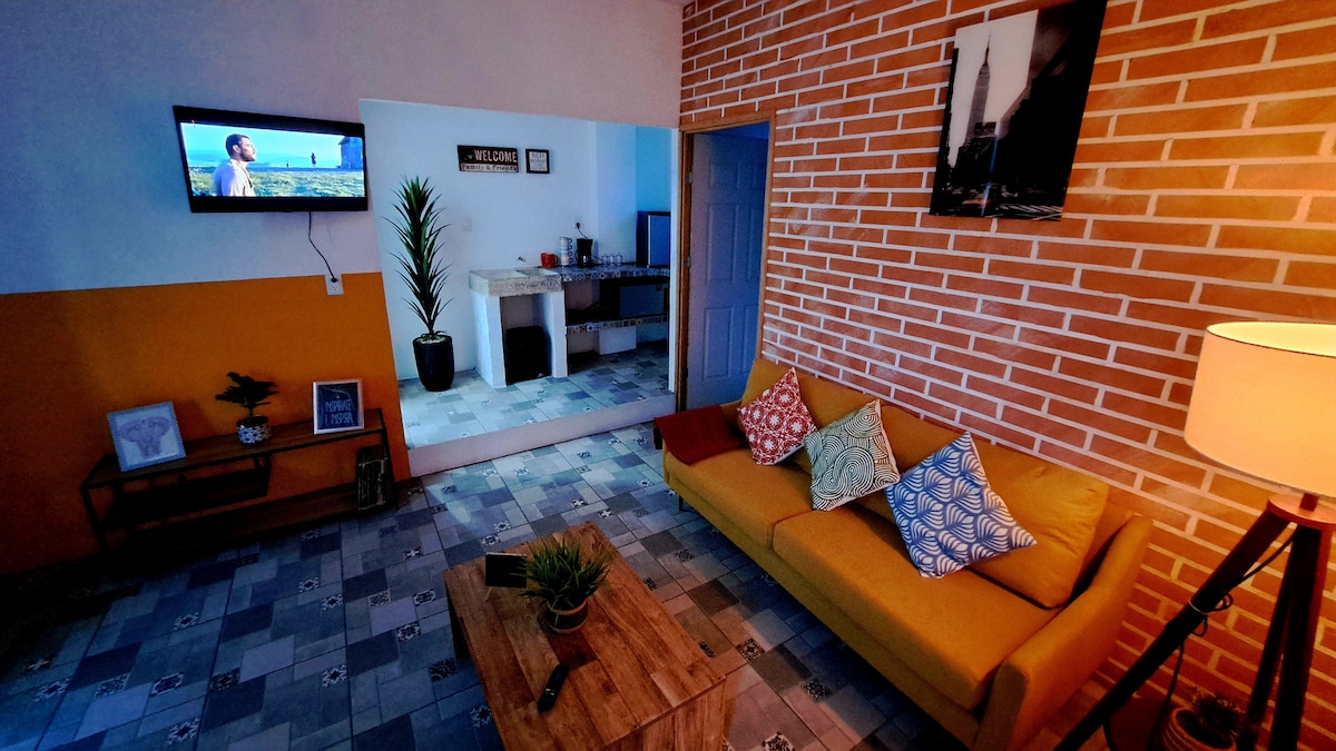 Yonwabela iintsuku ezimangalisayo njengentsapho kwindlu enefenitshala yeloft yoshishino, ekwicandelo eliseXochitepec, Morelos. Inamagumbi okulala ayi-2, ngalinye linebhedi elala abantu ababini, ukongeza elinye lamagumbi linebhedi ekwayisofa • Igumbi Lokuhlala •Ikhitshi linezinto ezifunekayo • Igadi enendawo yokoja • Ipuli yabucala • Iminatha yeengcongconi, iifeni zesilingi nee-air conditioner • Indawo yokupaka • Ukujonga iiyure eziyi-24 • I-intanethi Indawo ithe cwaka, ifikeleleka lula
