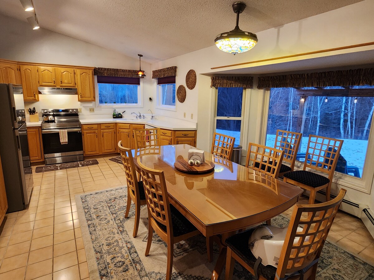 Ukukhwela i-Skiing! Iswekile kunye ne-Snow 20%discount! NgoMatshi kukho iswekile yempele neqhwa elininzi eBretton Woods (yimizuzu eyi-20 kuphela ukusuka apho). Indlu yodidi oluphezulu ekwichibi labucala elineHot Tub, indawo yokubasa umlilo yangaphandle, itafile yokubasa umlilo ngegesi kunye newayini yasimahla, ikhitshi elipheleleyo, itshizi entle, ishawa entsha, ibhafu yeJacuzzi, iindawo zokubasa umlilo zombane, kunye neendawo ezimbini zokusebenza. Iihektare ezingama-68 + iimayile zeendlela eziya kwihlathi likarhulumente elikufutshane, eli lisiseko esifanelekileyo sokutyibiliza kwi-ski ngexesha lexesha eliphakamileyo kunye nohambo oluzolileyo lwasebusika. Izinja zamkelekile!