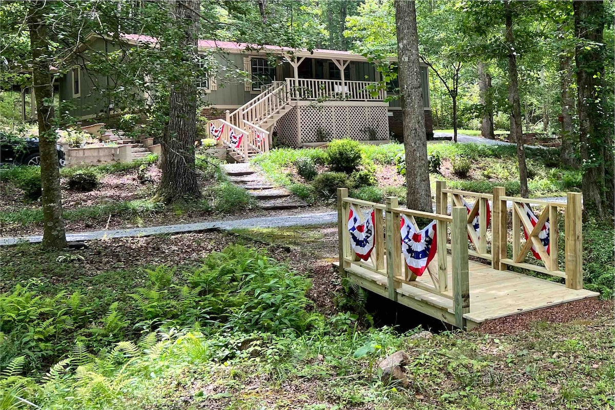 Uza kuziva usekhaya kwindlu yethu esemaphandleni enamagumbi okulala ayi-3/amagumbi okuhlambela ayi-2, kwimizuzu eyi-5 xa uhamba ngemoto usuka edolophini iToccoa. Yonwabela ukuhlala kamnandi nokulula komgodi womlilo oneendawo zokuhlala, indawo yokupaka ukuya kutsho kwiimoto eziyi-4, indawo yokudlala yeendwendwe ezincinci, indawo yokusebenzela/yokufunda, nokungakumbi. Indawo yethu esecaleni neendawo zokuhlala ezintle zilungele intsapho encinci, umhlobo, okanye iindawo zokuhlala ezisezintabeni zomsebenzi. Iinkuni neempahla zasefama/iimveliso zamaxesha athile onyaka zisenokufumaneka ngaphambi kokuba ufike. Kukho iimali ezimele zibhatalwe.
