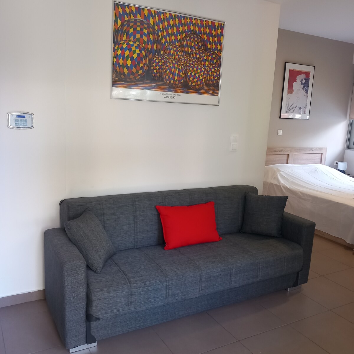Le flethi isandul 'ukwakhiwa, inelanga, itofotofo kwaye ivuleke kakhulu (90 sq.m.) Inokuhlala abantu abane ibe ine-terrace enkulu kakhulu (30 sq.m.)enendawo entle. Ifumaneka kwingingqi ethe cwaka, ilungele iiholide kunye nohambo lwezoshishino, malunga nemizuzu eyi-20 ukusuka eSyntagma Square esembindini weAthene (iikhilomitha eziyi-11 ibe ixabisa i- € 13-15 ngeteksi)