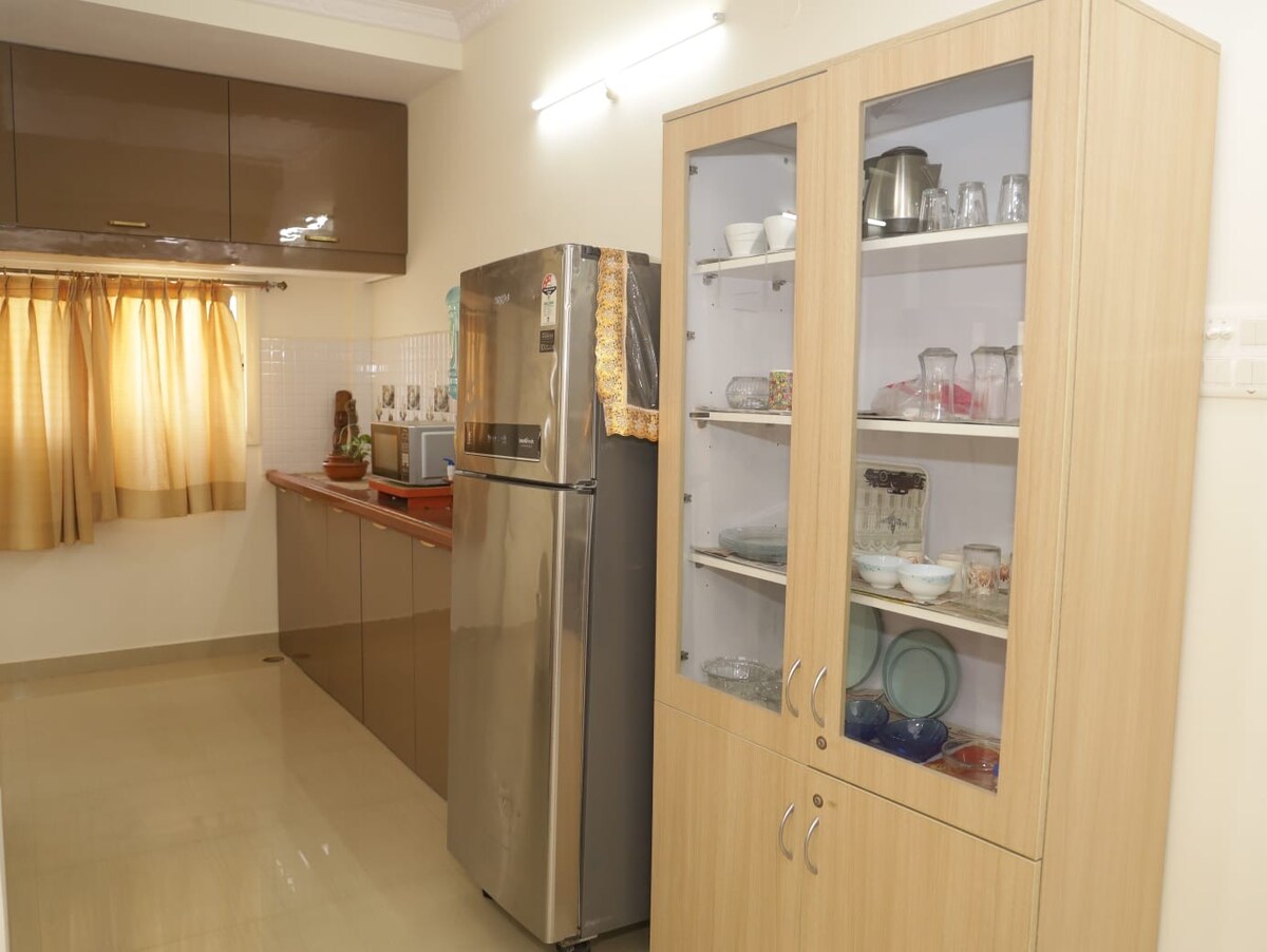 Yonwabela ukuhlala kamnandi kule ndawo inefenitshala eyi-2 BHK ekwindawo ezolileyo yaseNew Chouksey Nagar, eBhopal. Inekhitshi elisebenzayo, iibhedi ezinkulu kwigumbi lokulala, nendawo yokuhlala nendawo yokutyela enomoya obandayo okanye oshushu, ilungele abantu abayi-4 ukuya kwabayi-5. Ifumaneka lula kwimizuzu nje eyi-20 ukusuka kwisikhululo seenqwelo-moya saseBhopal nemizuzu eyi-25 ukusuka kwisikhululo sikaloliwe, le ndawo yokuphumla esemgangathweni yenza kube lula ukufikeleleka ibe iquka indawo yokupaka equkiweyo ukuze ube noxolo lwengqondo. Umxube ofanelekileyo wokuba lula nokuzola ulindelwe nguwe!