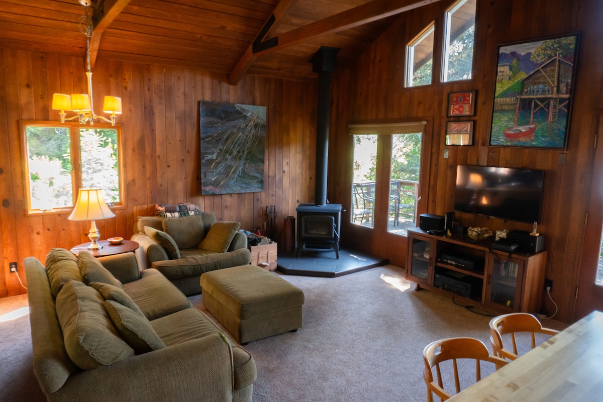 Yenza iinkumbulo ezithile kule ndawo ikhethekileyo nelungele intsapho. Le ndlu yamaplanga inemigangatho emibini emnandi, i-750 sf ibonakala kakuhle iKachemak Bay, iKenai Mountain Range ize iphume iye kwiHomer Spit. Le ndlu inemigangatho emibini ejonge ngaselunxwemeni, ngoko kusoloko kukho indawo yokuhlala uze wonwabele ukubuka iindawo ezipholileyo.
