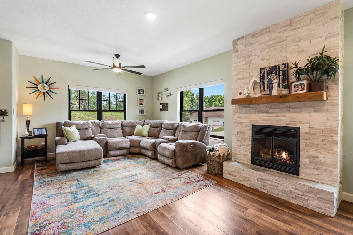 Igumbi elinomnyango ophumela ngaphandle eliyi-1300nangaphezulu kufutshane ne-I44 noMlambo iJames! Yonwabela i-SmartHome, icandelo lesikhumba sobunewunewu, i-70"QLED TV, ibhedi enkulu, iibhedi ezinkulu ezimbini, i-air hockey, nekhitshi elipheleleyo/indawo yokutyela. Indawo yokungena yabucala, ishawa yale mihla, i-bidet ekumgangatho ophezulu, iibhodi zemidlalo namanzi acociweyo eCulligan. Iindawo ezininzi, iindawo ezikufutshane ezilungele intsapho ezinokufikelela ngokukhawuleza eSpringfield, eBattlefield naseRiphabliki. Iholide yakho epholileyo nenxibeleleneyo iqala apha-bhukisha ngoku!