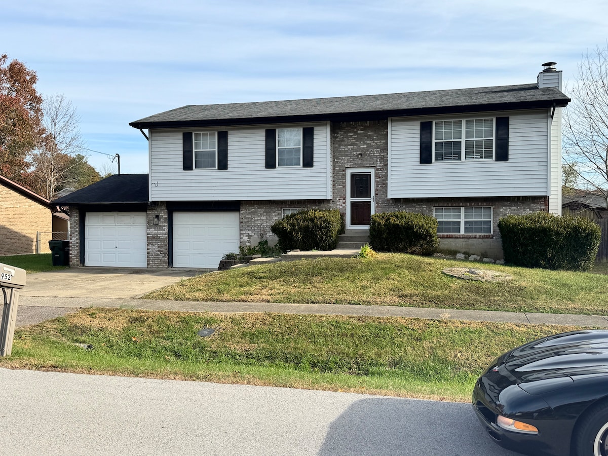 You'll experience all the comforts of home. A level entrance and easy access to every room. There is a walk-in shower located in the master bath, helpful for anyone with limited mobility. Bedrooms are separated, which allow privacy. Washer and dryer for your laundry needs, large kitchen fully equipped. A private, covered outdoor space provided with a grill and propane heat that allows extra room for dining. Minutes to all attractions. 1m music festival 15m Blue Oval 20m Fort Knox 8 m Ball Park