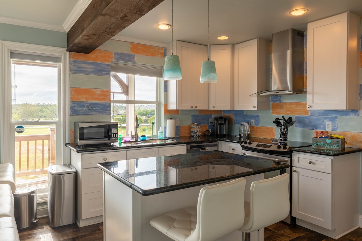 Indlu entsha entle engaselwandle enento wonke umntu kwipati yakho aza kuyithanda! Iyadi yakho engasemva ebiyelweyo izitepsi ukusuka kunxweme olubonakala lungapheliyo lwesanti emhlophe. Unokuyonwabela indawo entle kwibhalkhoni yakho enomgangatho wesibini okanye uphole kwiveranda yakho enomthunzi enekhitshi langaphandle, iifeni nendawo yokubraya. Abancinci abasentliziyweni baza konwabela i-air hockey, i-cornhole nezinye iindlela ezininzi zokuzonwabisa. Yonwabela enye yeendawo zokutyela ezininzi ezikufutshane okanye usebenzise ikhitshi elinento yonke.