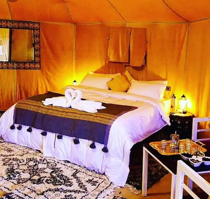 Siyakwamkela ngokufudumeleyo kwintsapho yethu nakwikhaya lethu, ukuze sikuxelele ngobuhle nobuhle beSahara size sifumane isigqi sobomi bokufuduka. Into enokonwatyelwa ekhethekileyo eSahara ifanele ibe yindawo ekhethekileyo yokuhlala. I-Indigo Luxury Camp yinkampu encinci yabucala enobunyani nobutofotofo kwiinduli ezinesanti zaseMerzouga. Le nkampu yobunewunewu yeyomthonyama kwaye ilawulwa ngabantu baseSahara.