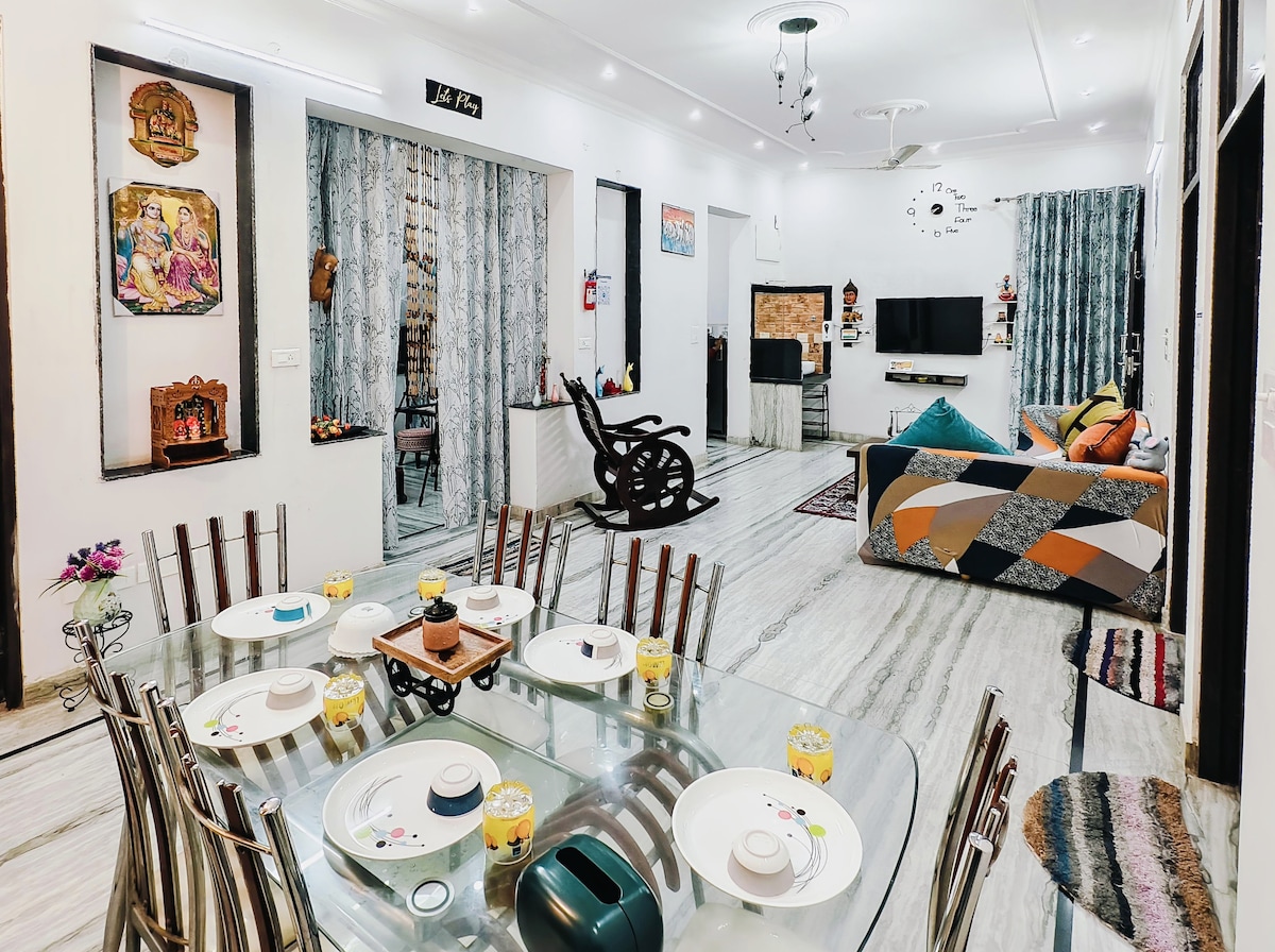 Le 3BHK ivulekileyo i-Airbnb inendibaniselwano entle yobutofotofo nesitayile sale mihla. Iholo enkulu yokuhlala ilungele ukuphumla ngoxa indawo yokutyela entle iqinisekisa ukutya okumnandi. Ikhitshi lenza ukupheka kube ngumoya. Igadi etofotofo ineendawo zokuphola eziphandle ezinoxolo. Yonwabela i-verandah okanye wonwabele i-Netflix kwi-TV ye-LED yee-intshi eziyi-65. Kuba inendawo eyaneleyo nezinto ezinokusetyenziswa ezicingwe kakuhle, le ndawo yale mihla ilungele iintsapho okanye amaqela afuna indawo entle nefanelekileyo enobunewunewu nobutofotofo.