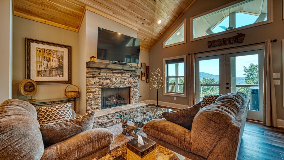 Rudge’s Retreat is a newly built mountain escape near Lake Chatuge in the beautiful Blue Ridge Mountains. Relax in the cozy living room with gas fireplace and 65” TV, or cook in the fully equipped kitchen. Large windows and French doors showcase stunning mountain views and open to a spacious deck where you can unwind in the private 4-person hot tub and enjoy peaceful mountain sunsets. Coming soon: 1G/1G Platinum High Speed Fiberoptic along with office setup and new monitor. (Currently Starlink)