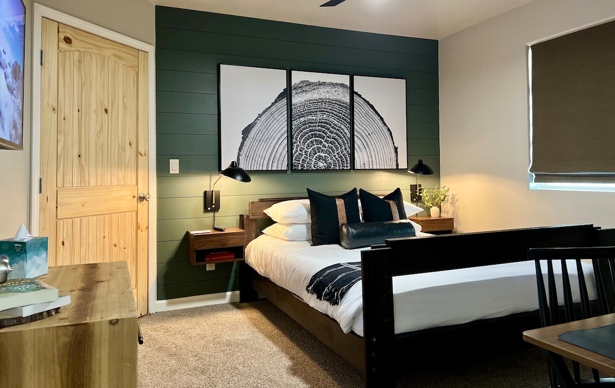 Indlu yamaplanga entle enemibhede eyi-2, enebhafu eyi-1 kwenye yezona ndawo zintle zaseBison Ranch! Yonwabela ukubuka ichibi lokuloba elinomthombo useverandeni. Yiya ezivenkileni nakwi-Wild Women Saloon. Kulala abantu abayi-6 kunye nesofa yokutsala, elungele abantu abatshatileyo okanye iintsapho ezincinci. Indawo yokubasa igesi etofotofo, ikhitshi elipheleleyo, indawo yokubraya, iWiFi, iRoku stick (eneakhawunti yeYouTubeTV), umatshini wokuhlamba okanye wokomisa impahla — yonke into oyidingayo ukuze uhlale kamnandi. Qaphela: Akukho nkunkuma kwindlu yamaplanga; isikhululo sokulahla inkunkuma sasekuhlaleni esikufutshane. Phola, buka uze wenze iinkumbulo ezingapheliyo!