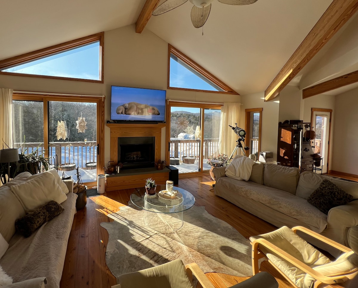 Wamkelekile ku- 'The Alexander' @ Casa de Moraga! Le ndawo incinci enguA-frame ihleli elunxwemeni lweBaker River w/kwiindawo ezintle zomlambo nee-White Mountains. Ikhitshi elipheleleyo, igumbi lokuhlambela/ ishawa nendawo yokuhlala/indawo yokutyela. Vuka kwigumbi lokulala eliseluphahleni uze ubone iintaba nomlambo usebhedini. Funda esofeni uze wonwabele indawo yokubasa amafutha, uqubhe okanye ufumane intlanzi emlanjeni - phola kwibhafu yakho yamanzi ashushu esemgangathweni ejonge emlanjeni! Imizuzu eyi-10 ukuya eTenney MTN. Imizuzu eyi-35 ukuya kwi-Ice Castles, eFranconia, eLoon naseWaterville!