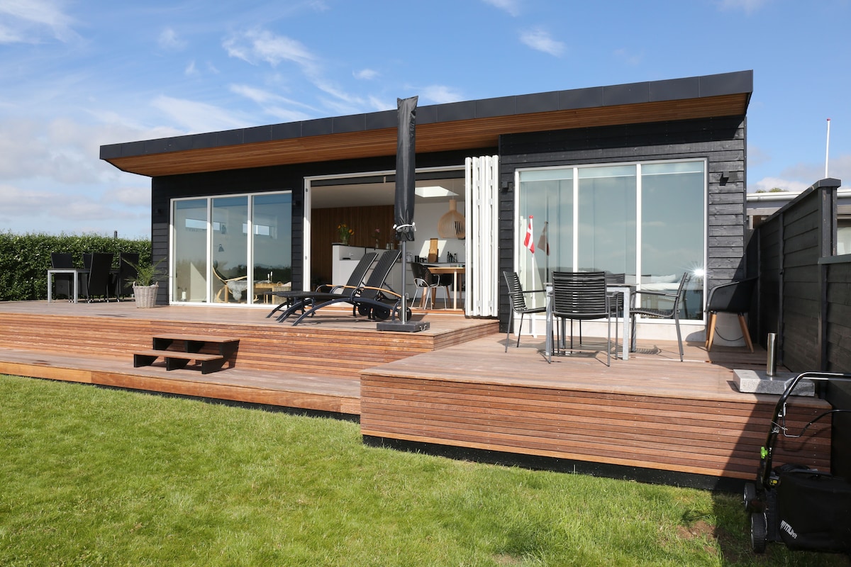 Wamkelekile kule ndlu isemaphandleni incinci, itofotofo, ekumgca wokuqala weLillebælt. Apha uvuka xa uvakalelwa ngamaza ibe ungalubona kakuhle ulwandle - usegumbini lokuhlala, kwiveranda nasegadini. Le nto yokuhombisa ilula kwaye itofotofo ngayo yonke into oyidingayo ukuze uhlale kamnandi. Ngaphandle uza kufumana i-terrace entle apho ungonwabela ikofu yakho yasekuseni uze wonwabele ukuphuma kwelanga Izilwanyana zasekhaya azivumelekanga