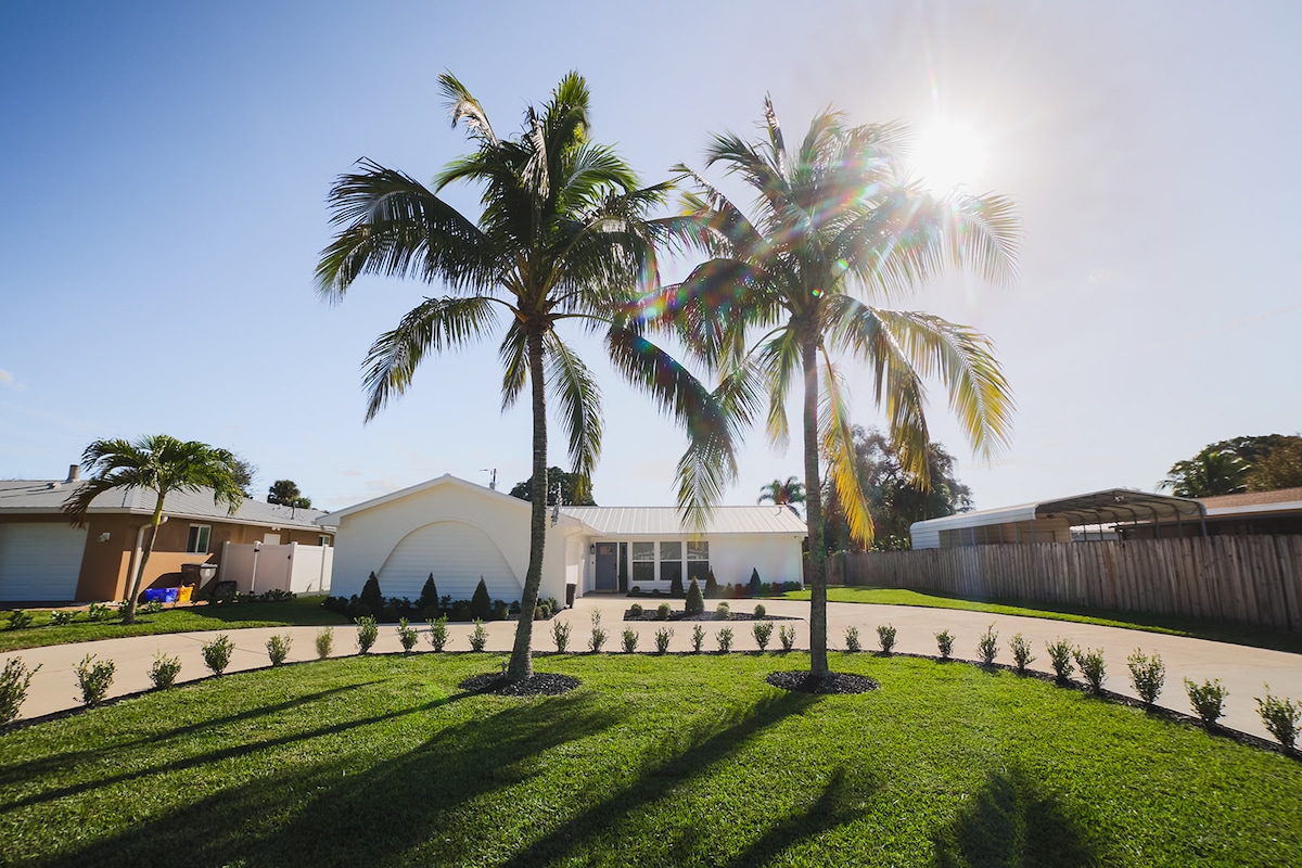 Eli xabiso liquka imali yokucoca kuAirbnb ngamnye. Ngaphantsi kwemayile ukusuka elwandle! Ikhitshi linezinto zonke. Igumbi lokuhlala, indawo yokutyela, igumbi lokulala elahlukileyo (ibhedi enkulu) elinegumbi lokuhlambela elipheleleyo. I-AC, ubushushu, amanzi ashushu, iWifi, iiTV eziyi-2, iyadi engasemva yabucala ene-bbq grill, indawo yokuhlala nendawo yakho yokupaka eyenziwe kakuhle, igumbi lesikhephe/i-jetski. Eli khaya likufutshane neendlela ezinkulu, izikhululo zeenqwelo-moya, iibhola zegalufa, i-pickleball, intenetya, iilwandle, iivenkile zokutyela, ukuthenga, ukunyuka intaba, imidlalo yasemanzini, izibhedlele nokunye. *Izinja zivumelekile ngemali yesilwanyana sasekhaya.