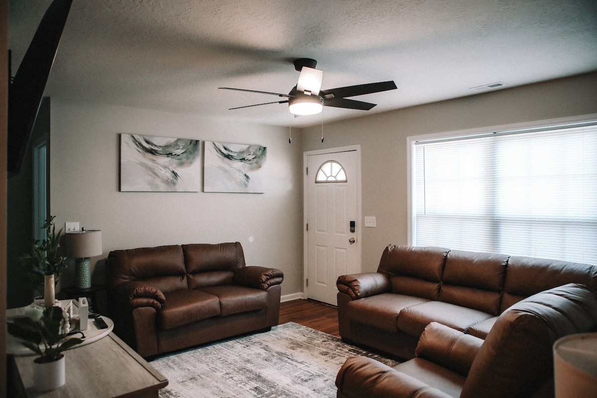 Le ndlu ihlaziywe ngokupheleleyo nge-3BR/1BA ihleli kwiKY Lake ekude kakhulu kwiindawo ezininzi zangaphandle nezilwanyana zasendle. Umgangatho ovulekileyo wenza ube nomtsalane apho unokuphumla khona emva kosuku lwakho kwiKY Lake entle. Igumbi lokulala elikhulu linebhedi enkulu, amanye amagumbi okulala ayi-2 aneebhedi ezinkulu. Kwakhona tsala isofa. Iindawo ezininzi zezikhephe zikawonke-wonke nezabucala zikwimizuzwana nje ezantsi kwendlela ezinceda naziphi na izinto ezifunwa ngumntu ongaphandle! Sikhangele phambili ekubeni ngumbuki zindwendwe wakho ebudeni buka-