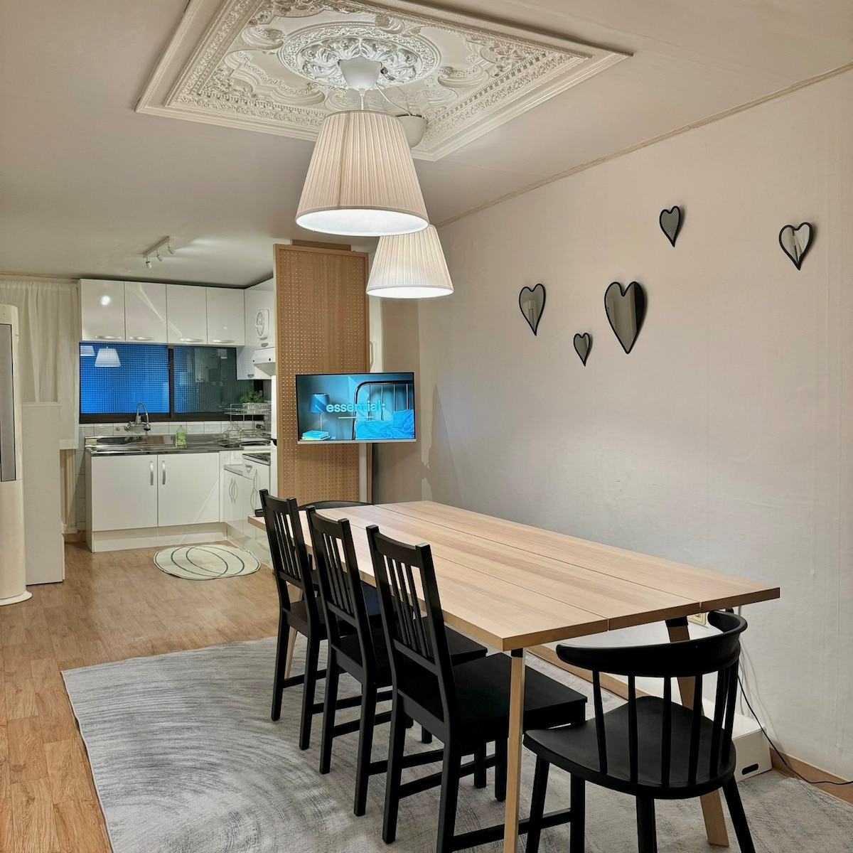 [SUSU HOUSE#3] 미니멀하고 따뜻한 이미지의 집입니다 여행객의 편안한 휴식공간이 되도록 잘 관리되고 있습니다 지하철과 버스정류장에서 가까운 위치로 주요관광지로 이동이 편리하고 장기숙박시 충분한 수납공간과 휴대용품이 완벽하게 준비되어 있습니다 침실과 거실의 공간분리로 더욱 쾌적하고 즐거운 시간을 보내세요 [메인공간] -테이블 -의자 -TV -Free wi-fi -Netflix 무료이용 [주방] -냉장고 -세탁기/건조기 -전자레인지 -전기포트/토스터기 -빨래건조대 -2인식기류 -조미료 -휴지통 [침실] -퀸사이즈침대 -2인침구 -옷장/옷걸이 [욕실] -수건 -화장지 -헤어용품/바디용품 -헤어드라이기 -비누/치약/칫솔 ☆주의사항☆ -예약인원외 출입금지 -객실 내 기물 및 시설물 훼손,오염,파손시 비용 청구 -오후10시이후 이웃에게 피해를 주는 행동 금지 -체크아웃전 설거지/쓰레기배출 🚭흡연금지-스프링쿨러가 작동됩니다 깨끗하게 사용해주세요