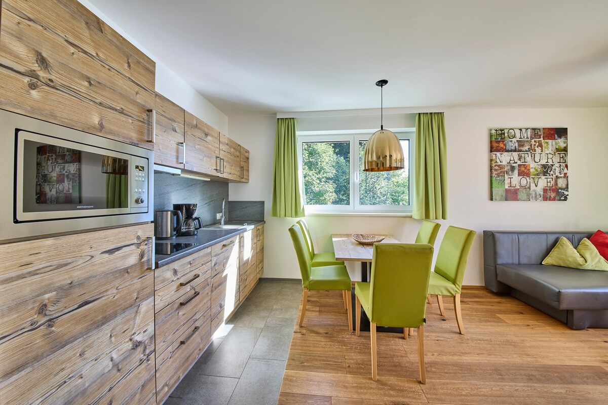 Le ndawo yokuhlala esembindini eyi-52M2 ihonjiswe kakuhle. Apha uza kufumana imvakalelo yaseAustria. Igumbi lokuhlala elingu-28 m2 linendawo eninzi. Inendawo evulekileyo yokuhlala netafile yokutyela. Igumbi lokulala lahlulwe laba ziindawo ezimbini. Ibhedi nesofa yeendawo zokulala eziyi-4. Le flethi ikwiimitha eziyi-300 ukusuka eZwolferkogel, iimitha eziyi-400 ukusuka kumbindi welali yaseHinterglemm. Ibhasi yokutyibilika ekhephini iyama ecaleni. Kukho indawo eyaneleyo ye-skis neebhutsi kwigumbi elingaphantsi.
