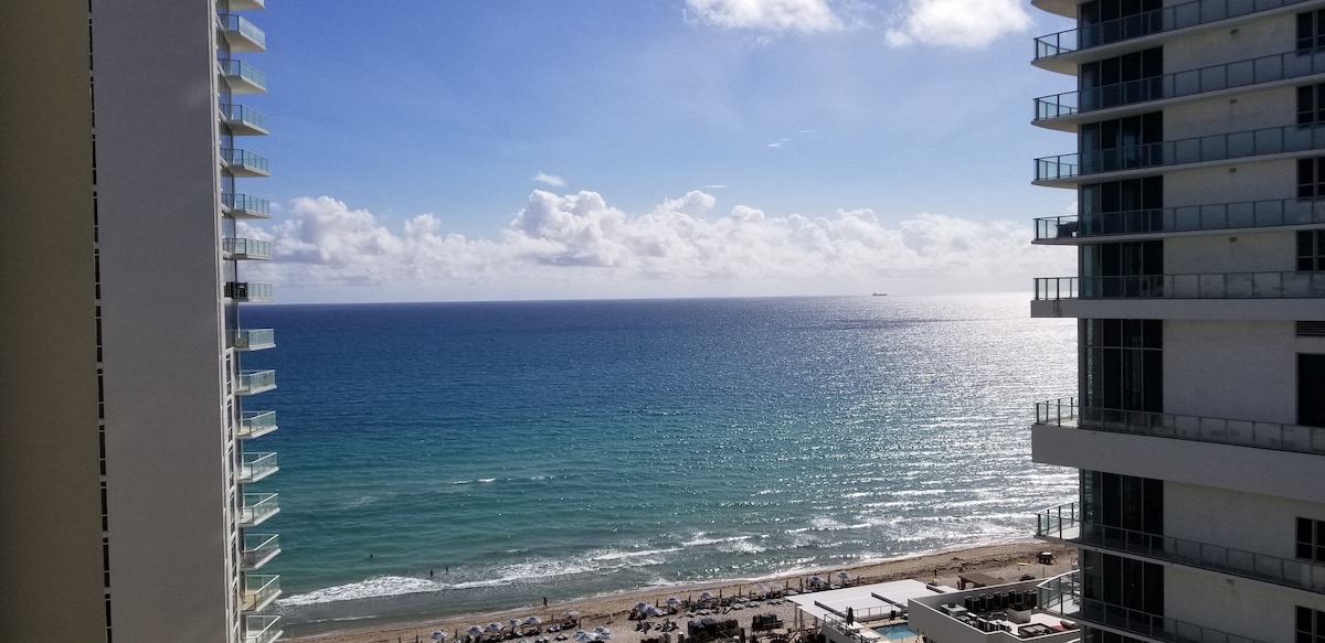 Yonwabela ukubona ulwandle ngokuthe ngqo kwindawo yakho yabucala (kumgangatho we-16) elunxwemeni ngqo. Iitawuli zaselwandle, isitsha kunye nesambulela ziyancedisa. Umgama wokuhamba ngeenyawo ukuya kwiivenkile zokutyela, iibhari kunye nokuthenga, i-RK Mall, iWalmart. Umzuzu nje we-20 wokuqhuba ukuya eSouth Beach, i-Aventura Mall, i-Hard Rock Casino Entertainment Centre, iivenkile zeGulf Stream Village kunye neHorse Race Course kunye nemizuzu engama-30 ukuya kwi-Sawgrass Mills edumileyo kunye neevenkile zeDolphin Mall. Ukubuka ulwandle kwigumbi lokuhlala.
