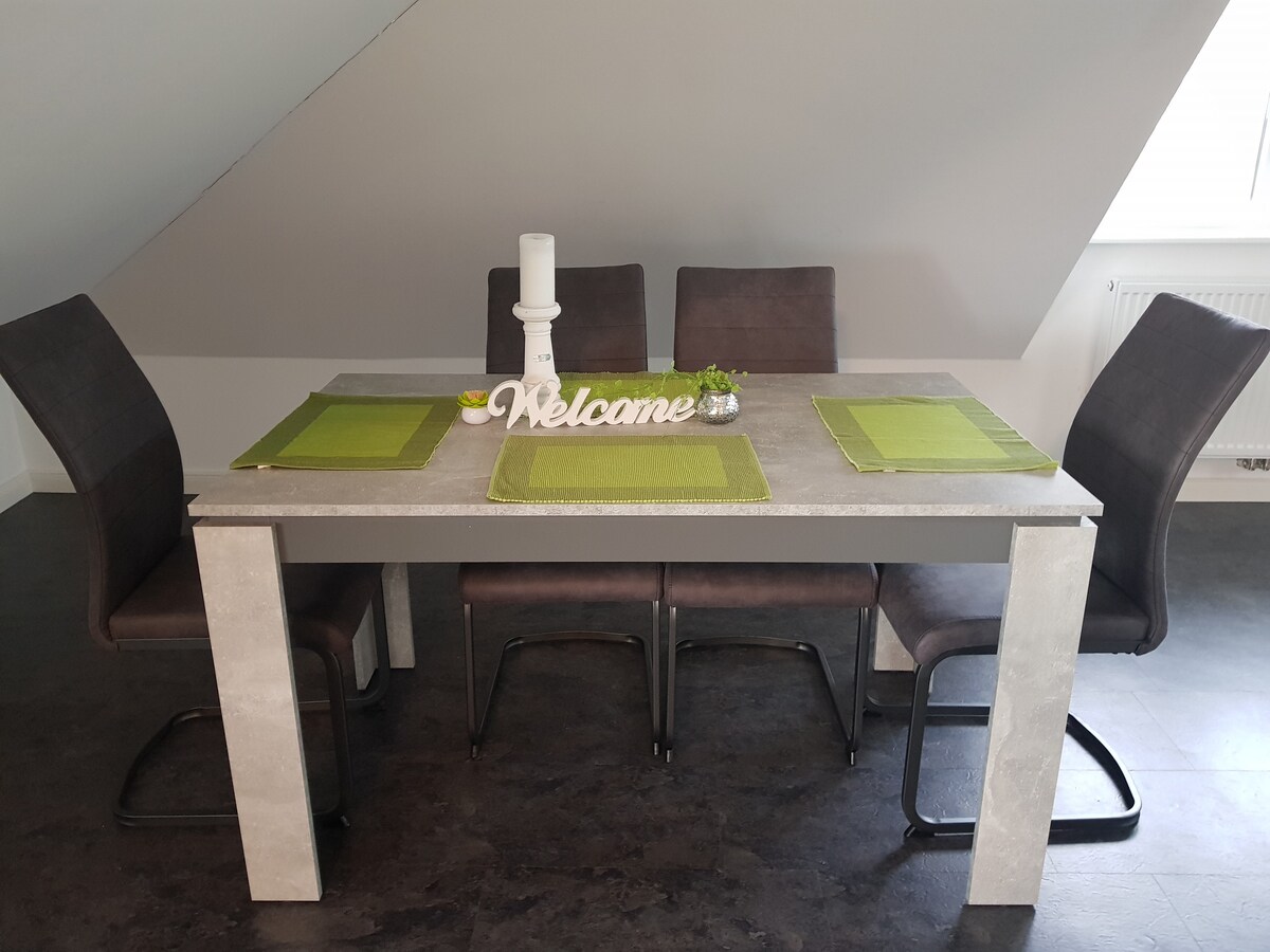 Wamkelekile eMühlenhof! Sikunye nabantwana bethu, sifezekise iphupha lokuhlala eBullerby yethu encinci ibe ngoku siyakuvuyela ukukwamkela kwifama yethu kwenye yeeflethi okanye izindlu ezikwicomplex ezinefenitshala zothando eziyi-3. Indawo yokubasa umlilo kunye nedune yethu encinci enezinto zokudlala zesanti zikunika wena, abantwana bakho kunye nabahlobo abanoboya amathuba amahle okuphumla nokubona. Ndikhangele phambili ekukuboneni kungekudala! UJaana