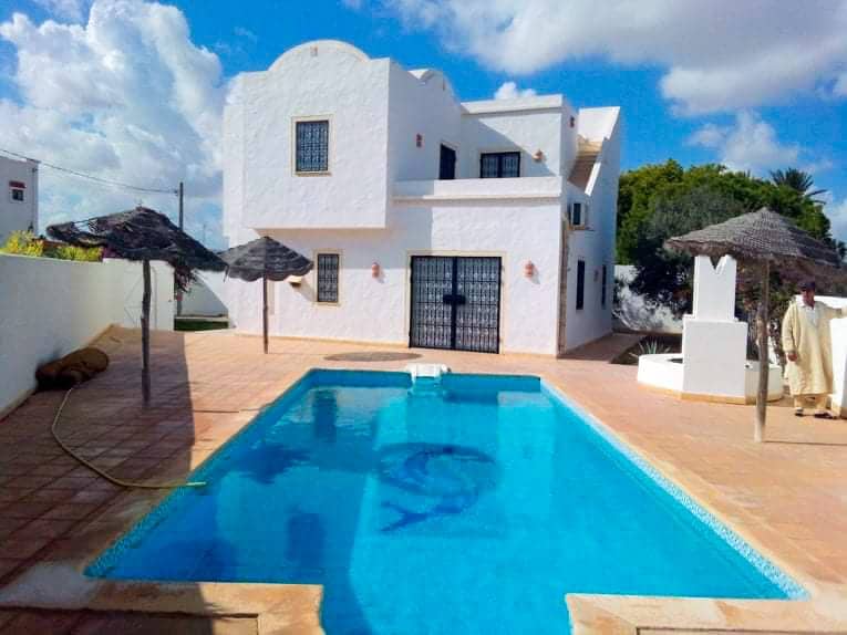 .Ce logement paisible offre un séjour détente pour toute la famille. villa de haut standing vue mer avec piscine priveé ❤️ 📍 en face hôtel Radisson Bleu Djerba se compose de: ✅ Piscine privée . ✅ 1 Suites parentale et 2 chambres à coucher , les chambres sont climatisé ✅ 3 salles de bain 🛁 ✅ un grand jardin , barbecue et un garage privé ✅ une cuisine moderne aménagée par des espaces de rangement et bien équipée . ✅ 1 salon et salle à manger ✅ Accès internet gratuit