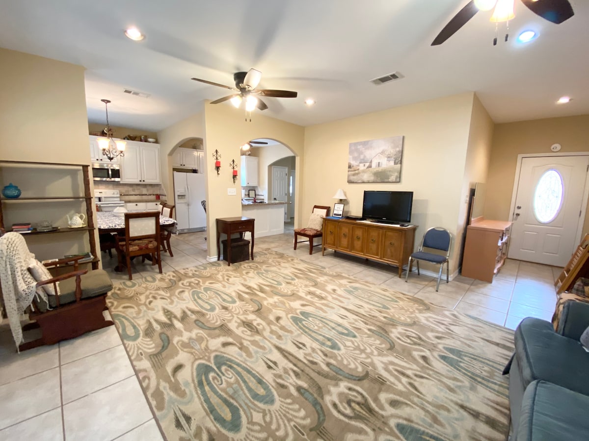 Izulu elincinci, liqhushekwe ngasemva kwee-acre eziyi-3 emva kwendlu yethu. I-Cal neCarolyns iflethi encinci ekwindawo ekwicomplex ebhukishwe phantse unyaka wonke. Icoceke kakhulu ibe inazo zonke izinto ozidingayo kwimpela-veki emfutshane okanye ukuhlala ixesha elide. I- Eff inekhitshi elipheleleyo nomatshini wokuhlamba nowokomisa impahla. Ineendawo ezimbini zokuhlala ngaphandle, enye igqunyiwe ibe enye phantsi kweenkwenkwezi nezibane ezijikeleze indawo yokubasa umlilo. Kukho iigrili ezimbini ezinikiweyo, igesi enye kunye namalahle elinye eliza kukulungela. Le flethi inendawo yokungena yekhowudi