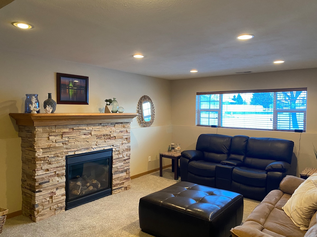Ixhonywe kwingingqi ethe cwaka nepholileyo, le flethi inemigangatho eyahlulahluliweyo. Le flethi itofotofo iyimoto emfutshane ukusuka kwisikhululo seenqwelo-moya, iivenkile zokutya, iMetraPark Arena, Izibhedlele, kunye nedolophu. I-Oasis Water park neLake Elmo zikumgama wemizuzu eyi-5. Le ndlu ilungele ukuhlala ixesha elide emsebenzini, indawo yokuhlala ngempela-veki ngoxa usiya kwimicimbi kwibala lemidlalo, okanye kwindawo ethe cwaka onokuya kuyo ngoxa undwendwela intsapho. Sikhangele phambili ekukuncedeni!