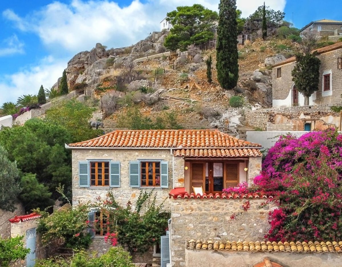 Ifumaneka ePorto Hydra Village, intsapho ekhuselekileyo eyakhiwe ejikeleze umjelo, enezindlu ezinendawo yokuphola zabucala ezihlala ngaselwandle olunesanti olukhulu lweSaronic Gulf ezingqonge iErmioni, le ndlu ilungisiweyo inemigangatho emibini, kwaye iphawuleka ngepuli yokuqubha , ibhalkhoni enye entle nenomthunzi omkhulu ebonakala elwandle, ibhalkhoni enye encinci kunye neveranda enye enomthunzi ecaleni kwepuli yokuqubha, ejikelezwe yigadi enezinto eziyimfihlo.