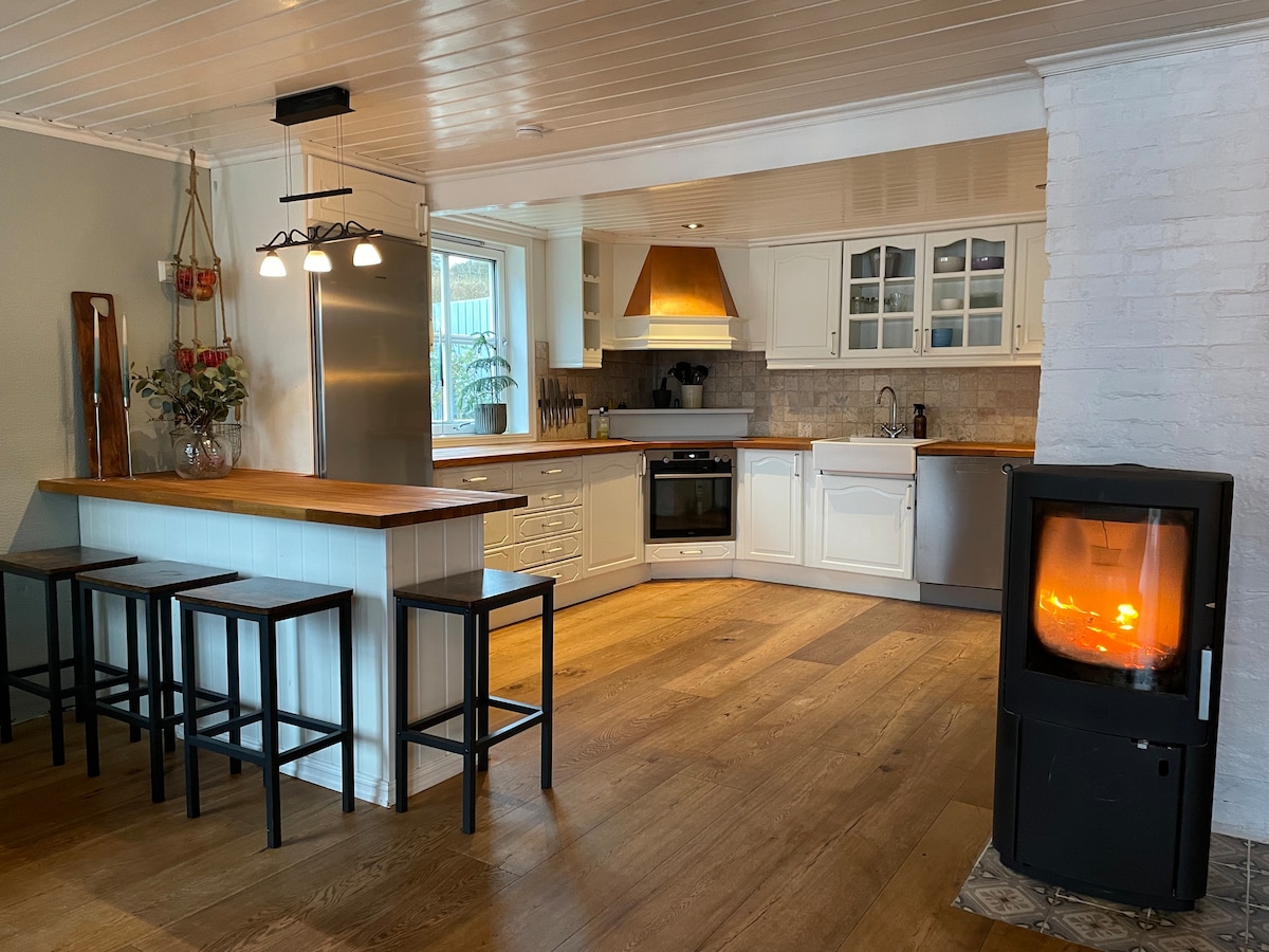 Indawo entle yeholide ekumgangatho omnye, ekwindawo entle, ekumgama omfutshane ukuya elwandle. Iindawo ezintle neemeko ezinelanga ukususela kusasa ukuya kutsho ekutshoneni kwelanga. Ikwindawo ethe cwaka, kwiimitha eziyi-30 kuphela ukusuka kwindawo yokupaka. (Imizuzu eyi-20 ngemoto ukuya kwi-Pulpitrock hike start) Umnyango osongwayo ngaphambili neminyango emibini emikhulu yokutyibilika yenza ukwazi ukuvuleka kwindalo ngaphandle. Amathuba okuloba nawokuhlamba kuphela kwiimitha eziyi-120 ukusuka kwindlu yamaplanga. Isitovu esivutha ngeenkuni ngaphakathi nangaphandle kwendawo yokubasa umlilo yeplanga. Onke amagumbi okulala anomthunzi welanga okhusela ukukhanya.