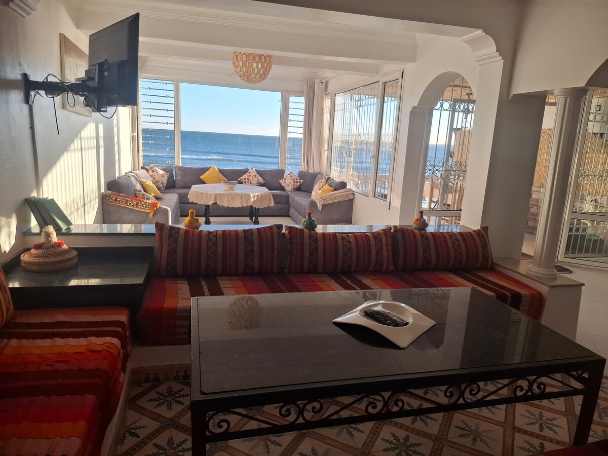 Indlu ekumgangatho ophezulu eneendawo ezintle zoLwandlekazi lweAtlantic embindini weTaghazout. Indlu ekhethekileyo nenobuchule, ejongene neenkcukacha, ukususela kwizinto ezintle ukuya kwifenitshala eyakhiwe ngobuchule. Le ndlu inamagumbi okulala ayi-4, amabini aneebhedi ezimbini, elinye linegumbi lokuhlambela elinegumbi lokulala, igumbi lokulala elineebhedi ezimbini kunye negumbi elinye elivulekileyo. Igumbi lokuhlala elikhulu elineefestile ezijonge elwandle, ikhitshi elinento yonke elijonge elwandle neveranda eneesofa, itafile yokutyela neBarbeque. Inkonzo yasehotele xa iceliwe.