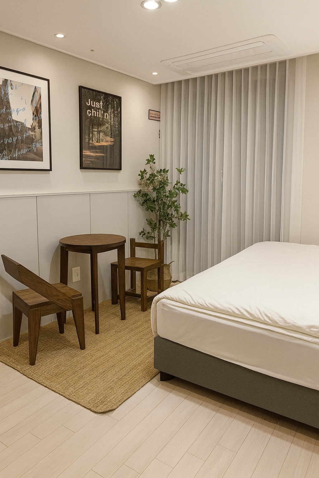 "2024년 3월 29일(금)부터 일회용품 무상제공이 금지됩니다" 퀸배드 1, 슈퍼싱글배드 1,의자 3개, 식기류 3세트 [Couple/Triple] Cozy 2-beds and 3/4 bath (1 Queen bed, 1 Super single bed) The Incheon Bridge view -Connect to Subway stn. "자가 격리가 불가능한 건물입니다." *Government Authorized* - Super Safe Guest house ▣무료(Free): 와이파이, 유튜브,건물내 주차 ▣비누, 네스프레소 캡슐커피머신,생수, 암막커튼,삼푸,린스,바디워시 ▣냉장고,드롬,커피포트,헤어드라이어,선풍기,청소도구 ▣달빛축제공원역 : 도보5분 ▣식당,카페, 편의점등 건물내 입점 ▣냉방&난방 안내 2025년 10월 13일 냉방 종료 / 10월 27일 난방 시작 ▣달빛축제공원에서 산책 ▣수영장개장(6월예정) : 투숙객 할인