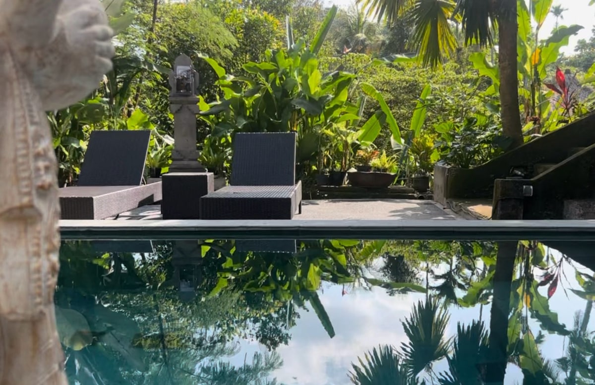 I-Junior Suite yethu entsha inebhalkhoni ejonge uMlambo neepaddies zerayisi kunye neRiverside Pool yethu entle! Ikwiimitha eziyi-230 kuphela ukusuka kwindawo enabantu abaninzi esembindini we-Ubud eneevenkile zokutyela ezili-100 kwaye ikumgama wemizuzu embalwa kuphela xa uhamba ngeenyawo usiya kwi-Yoga Barn nase-Monkey Forest. Uza kuba negumbi lakho lokuhlambela elineshawa kunye nekhitshi elincinci apho ungalungiselela khona ukutya okuphekwe ekhaya. Iquka i-A/C, ukucoca yonke imihla. Isandul' ukuphinda ifakwe—ukuze ubone izimvo zethu zexesha elidlulileyo yiya ku-airbnb.com.sg/h/sucijunior!
