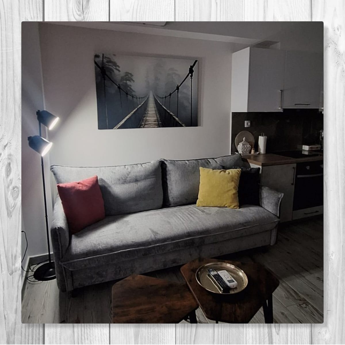 Amagumbi amabini, 2, umgangatho wesibini, ohonjiswe kakuhle ngokungcamla kwaye unomdla, uxhotyiswe ngokupheleleyo. Ilungele ixesha elihle lokuphumla unyaka wonke. Ikude kangangeemitha eziyi-50 ngeenyawo zezona venkile ziphambili, iivenkile zokutyela kunye neekhefi esixekweni. Le flethi inebhedi elala abantu ababini, isofa eba ziibhedi eziyi-2, isofa ehlala abantu ababini, umatshini wokuhlamba impahla, ikhitshi elinento yonke, umatshini wokwenza ikofu, i-toaster, iayini yombane nendawo yokupaka.