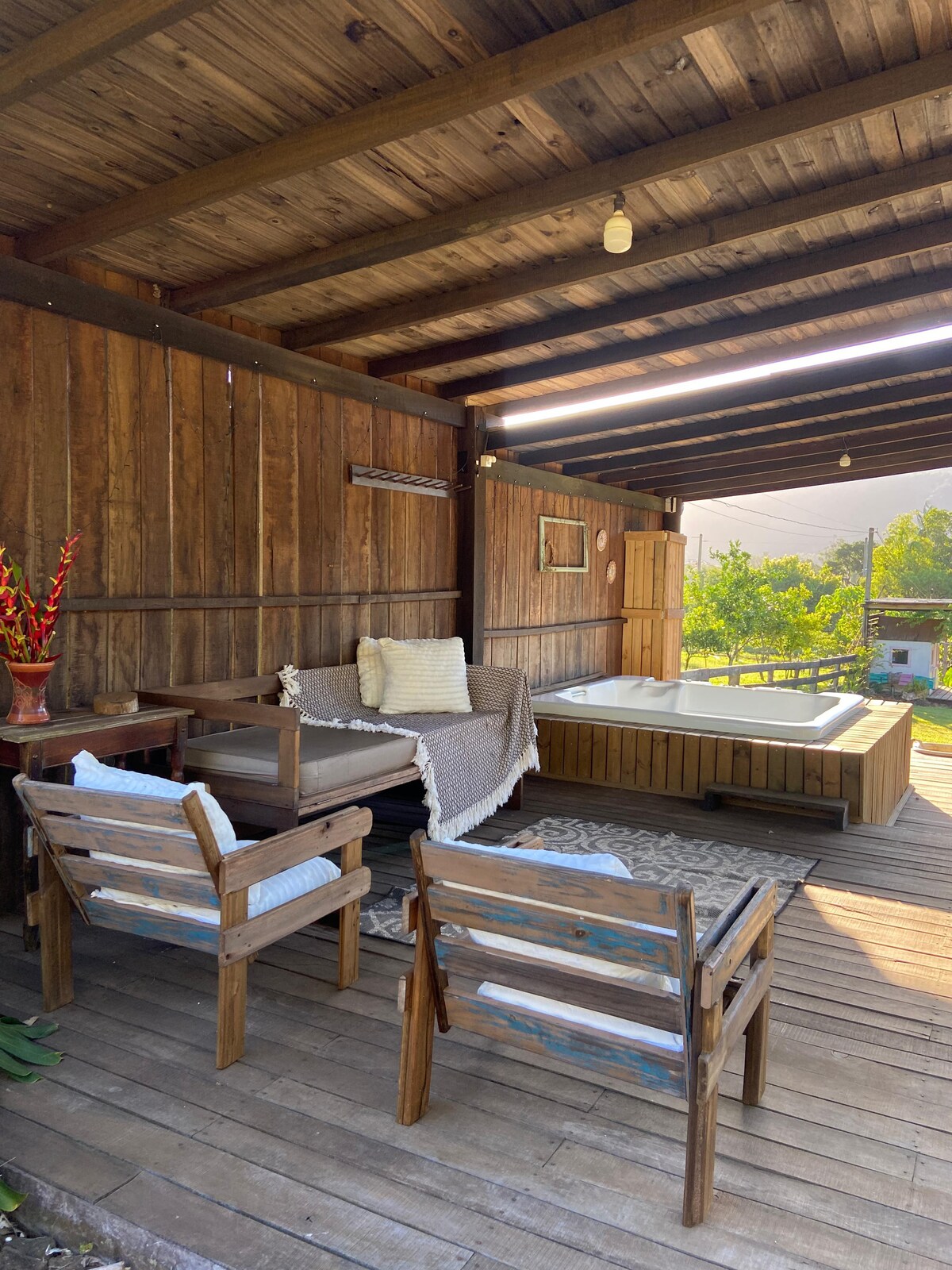 Iphambi kwechibi elihle, indlu yethu yamaplanga yindawo efanelekileyo yokuhlala yezibini – kuquka nabantwana abancinci – abafuna ukuphumla nokuzola. I-jacuzzi ekwigumbi inendawo entle yendalo, ilungele ukuphumla. Isidlo sakusasa siqukiwe kwixabiso losuku ibe sifumaneka eCafé Aratinga, okanye, ukuba uyakhetha, singathunyelwa kwigumbi (jonga amaxabiso). Indawo etofotofo enendawo entle nezinto ezintle eziza kwenza ube nexesha elimnandi