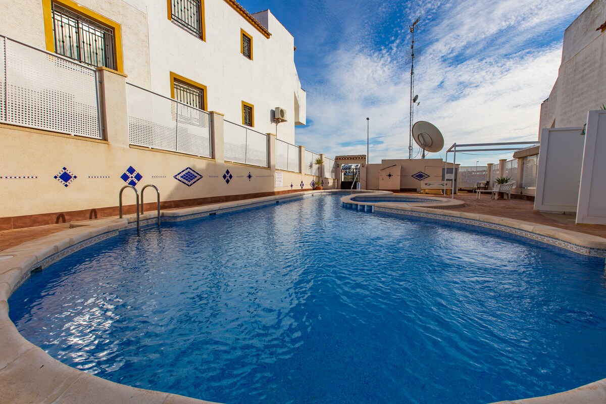 Le ndlu ikwidolophana yaseBenijofar, ekumgama ohamba ngeenyawo ukusuka kwiivenkile zokutyela/kwiibhari. Le ndlu inephuli yabucala, enokufudunyezwa xa kucelwa." Kukho amagumbi okulala ayi-3: amagumbi ayi-2 aneebhedi ezi-2 ezitofotofo, negumbi lokulala lesi-3 elinebhedi enkulu etofotofo nebhedi ekwelinye icala. Ikhitshi elinezinto ezipheleleyo likunika onke amathuba okupheka ukuze ufumane izinto ezikhoyo entliziyweni yakho. Kukho namagumbi okuhlambela ayi-2 aneshawa yokungena.