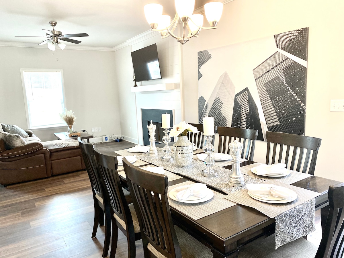 Yonwabela izinto ezihonjiswe kakuhle kule ndawo isembindini, umgama wokuhamba ngeenyawo ukuya kwiivenkile , iiklabhu zegalufa, kunye nesidiliya esidumileyo kunye neresort: I-Chateau Elan ikumgama wemizuzu eyi-3 kuphela xa uqhuba, iMichelin raceway yimizuzu eyi-10 kuphela,iivenkile zaseGeorgia yimizuzu eyi-15 kuphela xa uqhuba . Uya konwabela izinto ezinokusetyenziswa ezifana ne-Netflix, i-Disney kunye, i-Amazon prime kuyo yonke i-tv (i-4 iyonke ) yendlu. Sinobuhlobo nesilwanyana sasekhaya (imali eyongezelelekileyo) , ikhitshi elipheleleyo elinomatshini wokomisa umoya, umatshini wokwenza ikofu , umatshini wokwenza i-waffle, i-toaster , i-crockpot