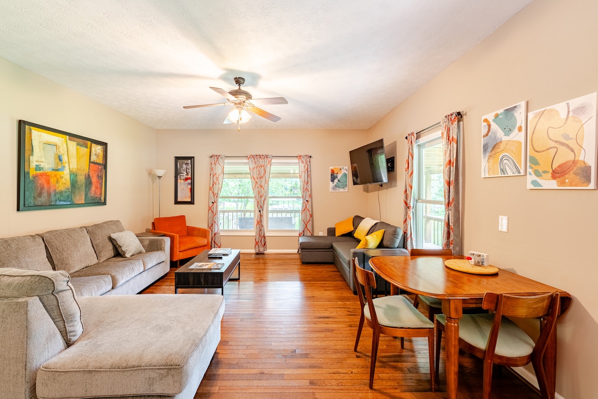 Yiya kule flethi ilungiswe kakuhle kufutshane neLake Martin. Le ndawo yeholide epholileyo inomphakathi ohonjiswe kakuhle, oboniswe kwiveranda enebhanti eluhlaza nemithi, apho unokuphumla khona uze ubone iimpungutye yonke imihla uze wonwabele ikofu yasekuseni okanye iwayini yangokuhlwa. Ukuzonwabisa nokuzonwabisa kulindwe kukufikelela kwiLake Martin entle, igalufa yaseStillwaters Community, iindlela zokunyuka intaba, kunye ne-pickleball kunye neebala lentenetya. Bhukisha indawo oza kuhlala kuyo namhlanje! Imizuzu eyi-35 ukuya eAuburn, uhamba ngeenyawo ixesha elifutshane usiya echibini. Phola kule ndawo ipholileyo nehonjisiweyo.