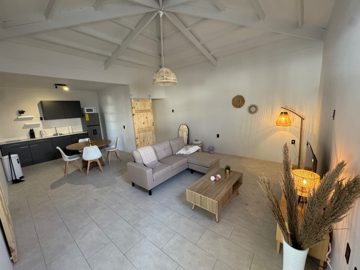 Yonwabela le flethi inegumbi lokulala eliyi-1 elilungiswe ngokupheleleyo nelisembindini eCuracao. Ukuhonjiswa kwale mihla, iisilingi eziphezulu neenkcukacha zemozulu kwenza uhlale kamnandi. Phumla kwigumbi lokuhlala elitofotofo, kwigumbi lokulala elitsha okanye kwiveranda etofotofo. Imizuzu nje eyi-10 ukusuka elwandle ukuya kufutshane neevenkile neevenkile zokutyela, indawo entle yokubuka esi siqithi.