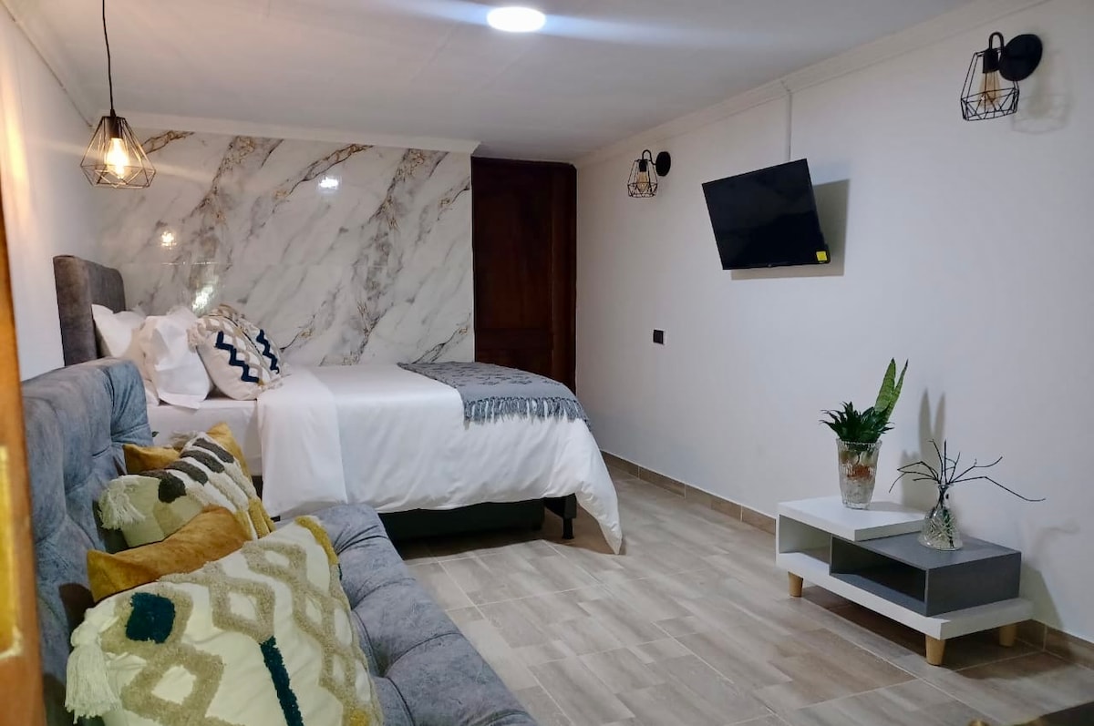 Beautiful apartment with spectacular mountain view, just 3 blocks from the principal park of Jardin. Surrounded by nature and very close to most of the tourist attractions of the town, wake up with the sound of birds and the river, this accommodation has plenty of space for you to enjoy with your family, Wifi, hot water and fully equipped kitchen.