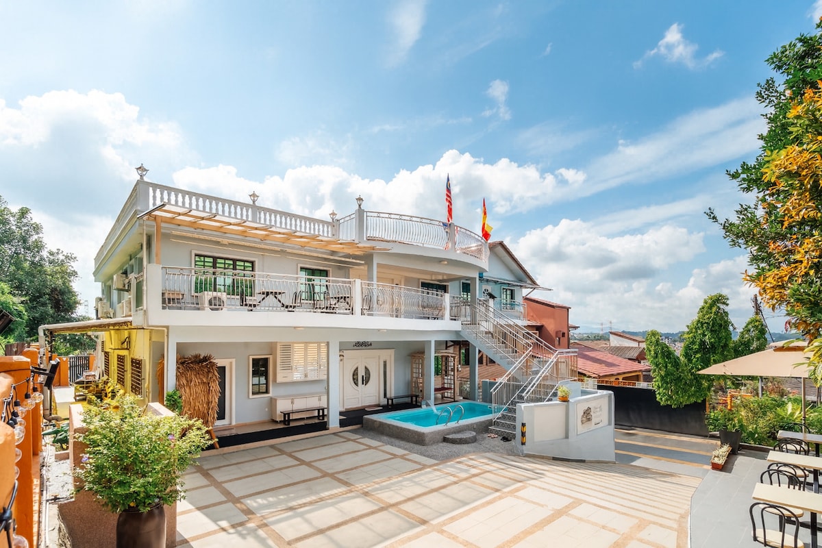 Yonwabela yonke intsapho kule ndlu yamaplanga yaseMalacca, enepuli yokuqubha yabantu bonke neendawo ezintle ezingasechibini. Ifumaneka kwindlu eneehektare eziyi-5 enohlaza oluchumileyo olunamachibi ayi-2 aneentlanzi zasekuhlaleni. Iveranda entle yokuphumla phandle nekofu ngoxa ubukele intsapho izonwabisa.