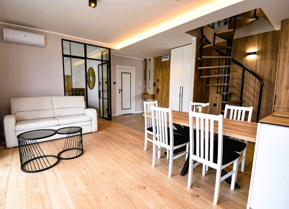 Sikumema ukuba uye kwiflethi ekhethekileyo embindini weMalbork, kwimizuzu nje eyi-5 uhamba ngeenyawo usuka kwiNqaba edumileyo yaseTeutonic. Le flethi intle, ekhuthazwa ngamahlathi idibanisa izinto zale mihla nezinto ezitofotofo. Ukuphumla kufumaneka kwibhafu enamanzi ashushu nendawo yokubasa umbane, ibe ngokuhlwa kuquka iTV eyi-75 ”ene-Ambilight. Ikhitshi elinento yonke likuvumela ukuba ulungiselele ukutya simahla, ibe iinkcukacha ezikhethwe ngononophelo zenza indawo ekhethekileyo. Le flethi ikumgangatho wesi-4, ibe yindawo ekhethekileyo.