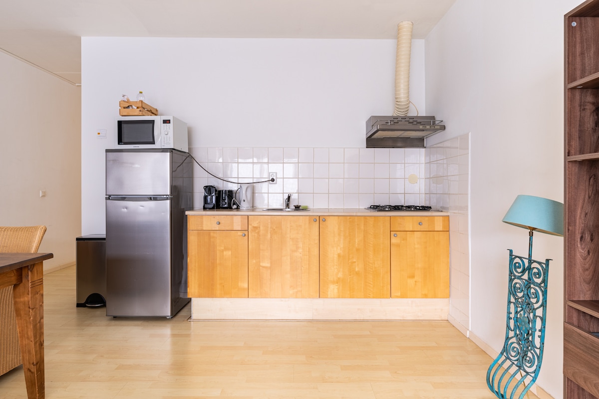 Siye salungisa indlu yethu yakudala ngomdla omkhulu saza sayibuyisela kwimeko yayo yokuqala. Kumgangatho wokugqibela senze iflethi esiyiqeshisayo ngoku. Le ndlu ikummandla ophilayo, imizuzu emi-5 xa uhamba ngeenyawo ukuya kwisixeko esikhulu, imizuzu emi-4 xa uhamba ngeenyawo ukuya kwisikhululo sikaloliwe apho unokufika kwisikhululo sase-Amsterdam Centraal ngaphakathi kwemizuzu eyi-34. Le flethi isandul' ukulungiswa kakuhle kakhulu kwaye inazo zonke izinto ezifunekayo, yeyakho wedwa ibe inebhalkhoni.