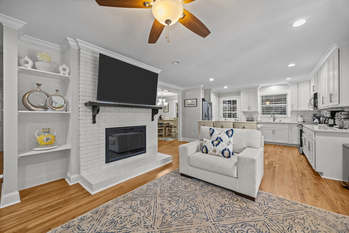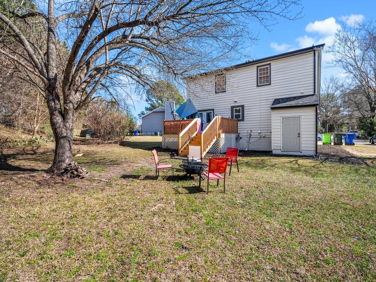 Ikhaya elihonjiswe kakuhle nelisandul 'ukulungiswa kwindawo ethe cwaka ~ umgama wokuhamba ngeenyawo ukuya eBrookside bodega kunye nesithili saseSt. Ithembisa iholide epholileyo kwindawo ephambili, ngaphantsi kwemizuzu eyi-5 ukusuka edolophini ~ embindini weRaleigh. Uludwe lwezinto ezinokusetyenziswa luza kubonisa ukuba luza kuhlala kamnandi: -Ibhedi etofotofo -Ikhitshi elinento yonke elinesitovu sobunewunewu -I-Smart TV kwigumbi ngalinye -Iindawo zokuzonwabisa zangaphandle zabucala