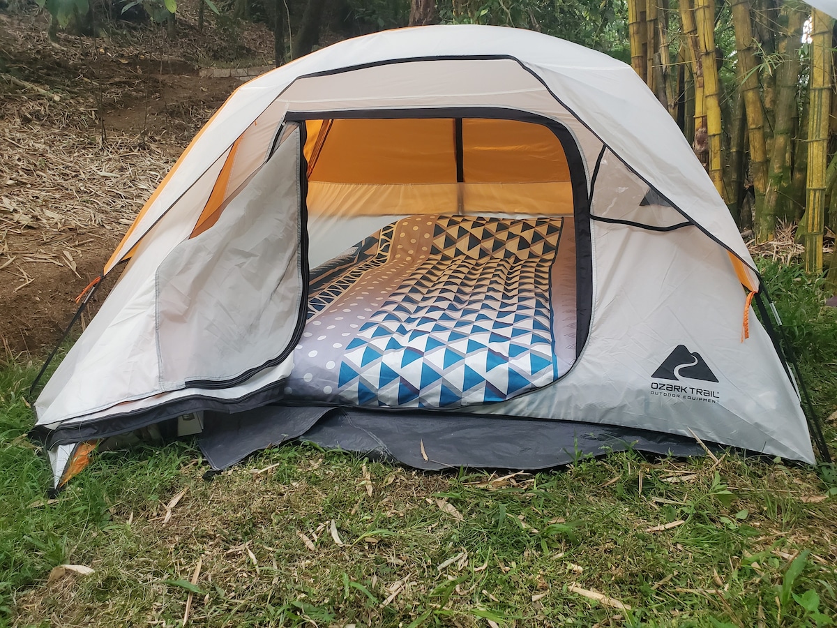 Tiendas para hasta 2 adultos y 1 infante en un rincón de bosque y manantial en una reserva a 260m del zócalo de Cuetzalan Casas de acampar equipadas con almohadas individuales, colchoneta king, sabanas de algodón, cobijas Sin costo: áreas comunes con cocineta equipada, espacio de comedor, patios, área de fogata, áreas de trabajo, wifi, estacionamiento, baños con agua caliente Opción: restaurante con opción de gastronomía local, temazcal tradicional con aromaterapía y masaje, y más actividades