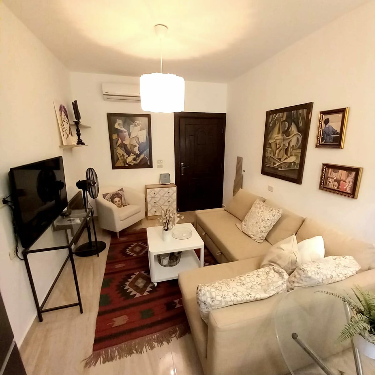 ( Nceda Ufunde ingcaciso epheleleyo) Igumbi lokulala elikhethekileyo elinamagumbi okulala ayi-2 elineveranda enkulu ejonge phezu kwesixeko, amagumbi okuhlambela ayi-2, indawo yokuphumla, ikhitshi elinento yonke, elungele intsapho encinci nelungele ukusebenza usekhaya. Ifumaneka kufutshane nendlela Yesikhululo Seenqwelo-moya, imizuzu eyi-7 ukuya eAbdoun, imizuzu eyi-15 ukuya kwiDolophu, imizuzu eyi-20 ukuya kwisikhululo seenqwelo-moya. Umphezulu wophahla ngumgangatho wesine, isakhiwo sinelifti eya kumgangatho wesithathu nezitepsi eziya phezu kophahla. indawo ikhuselekile kwaye ayinangxaki, indawo yokupaka isimahla esitratweni, Wamkelekile wonke umntu :)