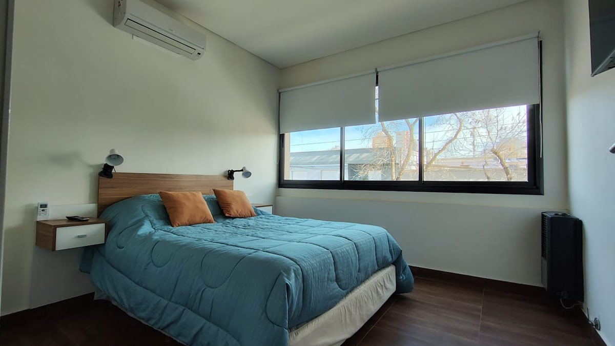 Wamkelekile kule flethi yale mihla nevulekileyo embindini weJunín! Inamagumbi amabini akhanyayo, elinye linebhedi enkulu elinye lineebhedi ezimbini, lilungele amaqela okanye iintsapho. Igumbi lokuhlambela lithe gabalala ibe igumbi lokutyela ekhitshini lixhotyiswe ngokupheleleyo ukuze kube lula kuwe. Imizuzu ukusuka kwiivenkile zokutyela, ezoshishino nezinto ezinika umdla, uza kuba nayo yonke into oyidingayo ukuze wonwabele iJunín. Siyathemba ukuba uza kukonwabela ukuhlala kwakho!