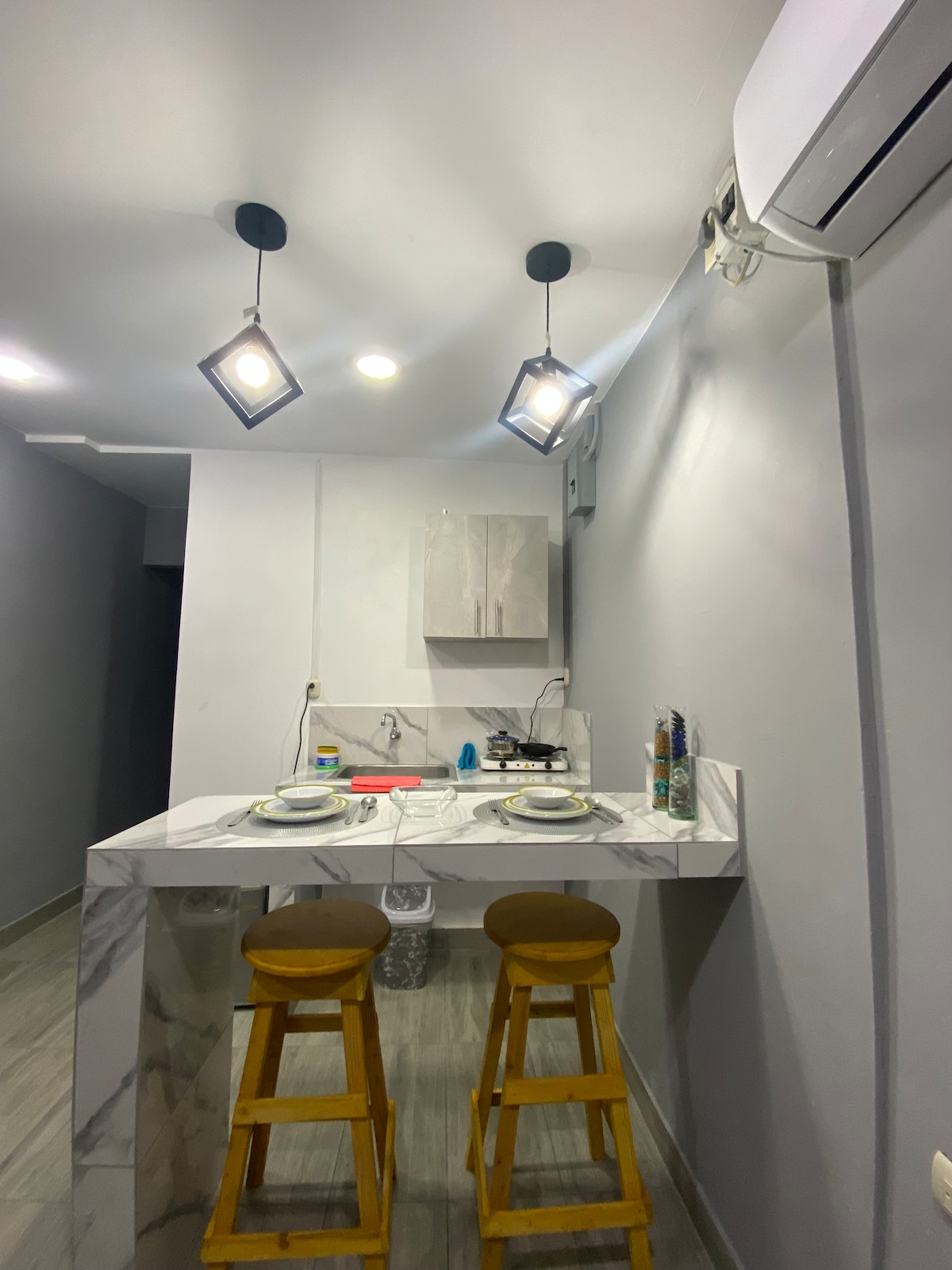 Wamkelekile kwindawo yakho entle eGuayaquil. Igumbi elinamagumbi amabini elizimeleyo lale mihla, elikwindawo yokuhlala ethe cwaka kumntla wesixeko. Ilungele abantu ababini, ibe kusenokwenzeka ukuba ufake ibhedi eyongezelelekileyo xa uyicelile. Kwimizuzu nje eyi-7 ukusuka kwisikhululo seenqwelo-moya nakwi-terminal yomhlaba, uza kufumana yonke into oyidingayo kwiindawo ezijikelezileyo. Yenzelwe ukuba iindwendwe zizive zisekhaya zitofotofo, zibe zodwa ibe yindawo ephambili.