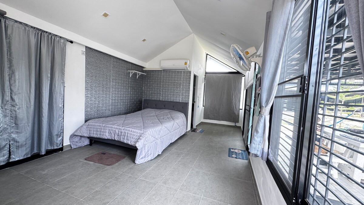 Ikhaya Elimnandi likufutshane neKaengkrachan Dam, kwiPhondo lasePhetchaburi (5 Kms. ukusuka eKangkrajarn Country Club, 10 Kms. Idama laseKaengkrachan, i-20 Kms Royal Agricultural Project (Chang Hua Man), iKhao Phanoen Thung Mountain) - Indlu yokuqala inendawo eseluphahleni oluphezulu (ubukhulu bebhedi eyi-6 feet +ngaphandle kwekhitshi). - Indlu yodongwe ngasemva (amagumbi ayi-2 ahlukeneyo + amagumbi okuhlambela ayi-2 + igumbi lokuhlambela eliyi-1 phambi kwendlu + ubukhulu bebhedi eyi-5 feet +ngaphandle kwekhitshi) - Kukho izitepsi zangaphandle eziya kuphahla oluphezulu olujikelezwe ziintaba.