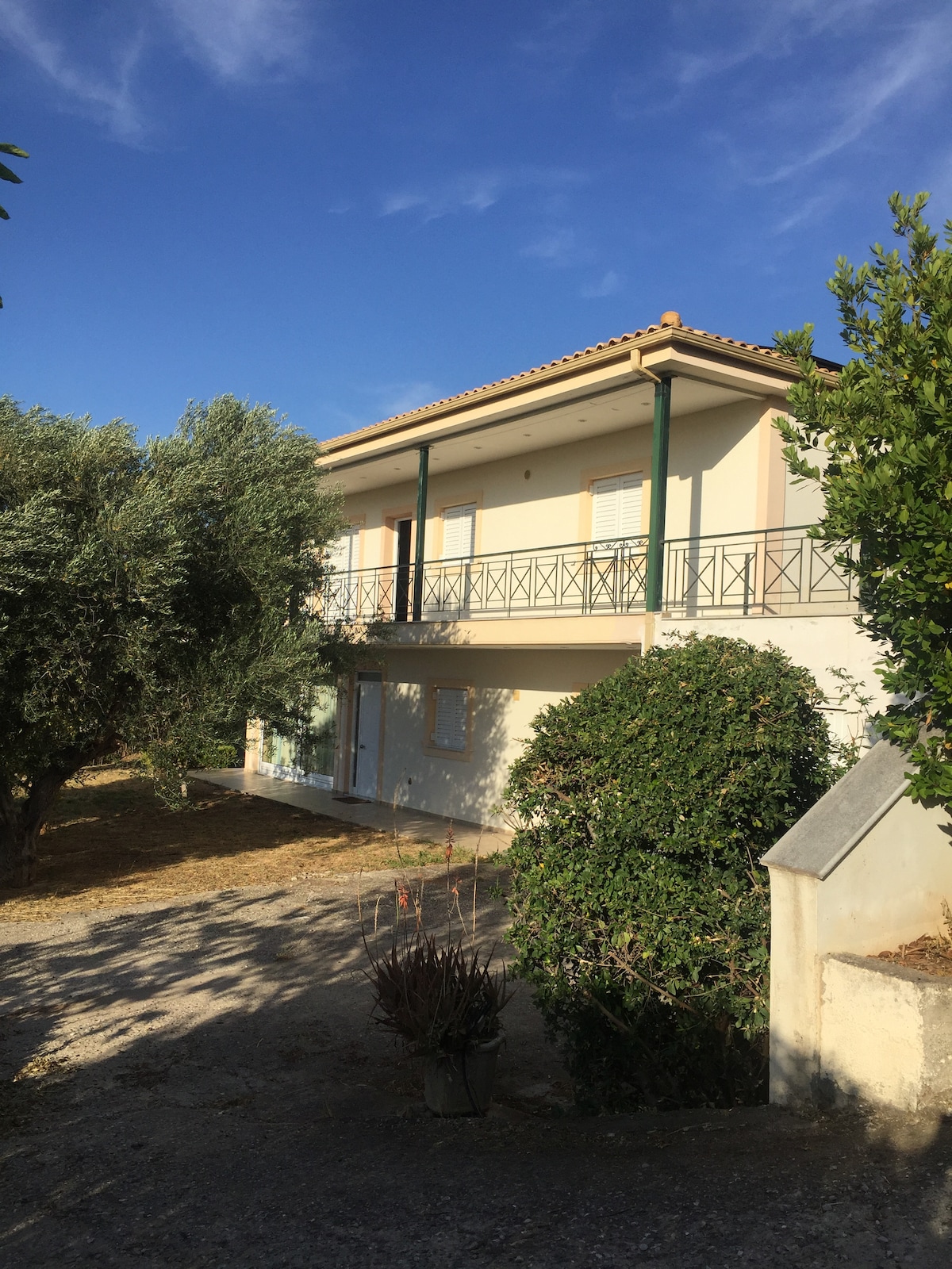 Ijikelezwe yimithi yomnquma, iimitha ezimbalwa ukusuka kwindlela esemaphandleni ekhokelela kwimizuzu emithathu ukusuka elunxwemeni lwaseAkratas ukuya kwintsapho yaseAmbelou uza kufumana indlu yethu. Yindlu enezitezi ezimbini enezitepsi zangaphakathi kunye negadi enkulu ehonjiswe ngepuli ethandekayo. Ukusuka endlwini yethu uneendawo ezingabonakaliyo zeGulf yaseCorinthian, kodwa neentaba zaseAkayaia!