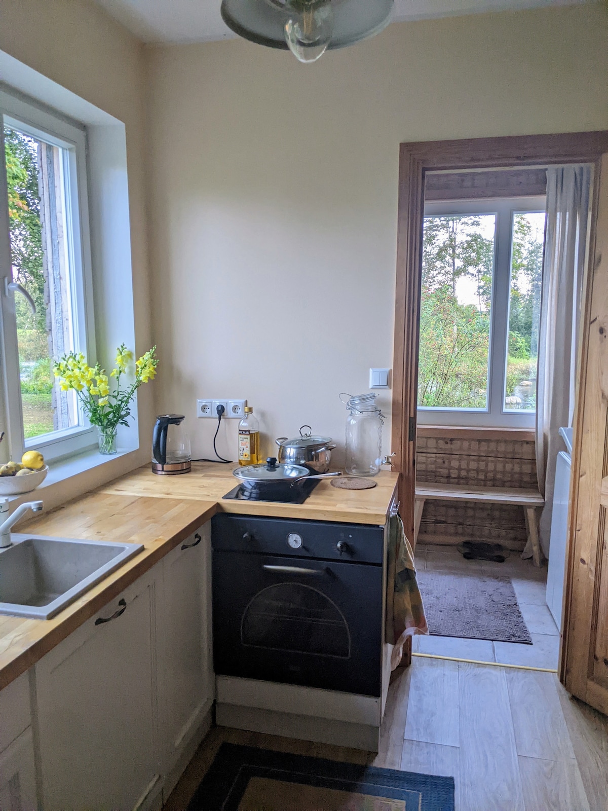 Indlu Yeholide enezinto ezinokusetyenziswa elunxwemeni lweLake Auks. Ibhedi enkulu eyi-180cm enye encinci-iisentimitha eziyi-120. Ukongezelela ekubeni kubekho ibhedi yosana. Umatshini okhupha umoya obandayo okanye oshushu. I-Wifi. Amanzi ashushu. Ikhitshi elincinci. Ibhulorho yakho. I-terrace yakho. I-TV. Ifriji. Ungakwazi ukuqubha. I-Barbecue. Ukusetyenziswa simahla kwe-sauna. Indawo yokupaka yasimahla. Ibala lokutya elikumgama wekhilomitha eyi-1. Thenga iikhilomitha eziyi-5. Iikhilomitha eziyi-10 ukusuka kwisixeko saseViljandi. Amathuba okuhamba ngesikhephe nokuqubha simahla. Ihlaziyiwe ngoAprili 2025- ifriji entsha enkulu enefriji, umgangatho wokuqala opeyintwe nethobhi entsha enamanzi.